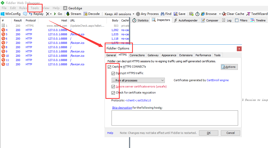 Fillder4不间断提示the system proxy was change问题描述问题解决1是否安装银联控件2Internet属性设置3fiddler4RulesCustomize Rules 问题描述 fillder4又出现了新的问题一打开还可以抓过了几分钟后就提示the system proxy was change就抓不. 1 shut down all browsers fiddler and all of the aforementioned programs or any other program that you might think might change proxy settings. Some disgusting programs always modify the default proxy causing Fiddler to interrupt the capture of packets.